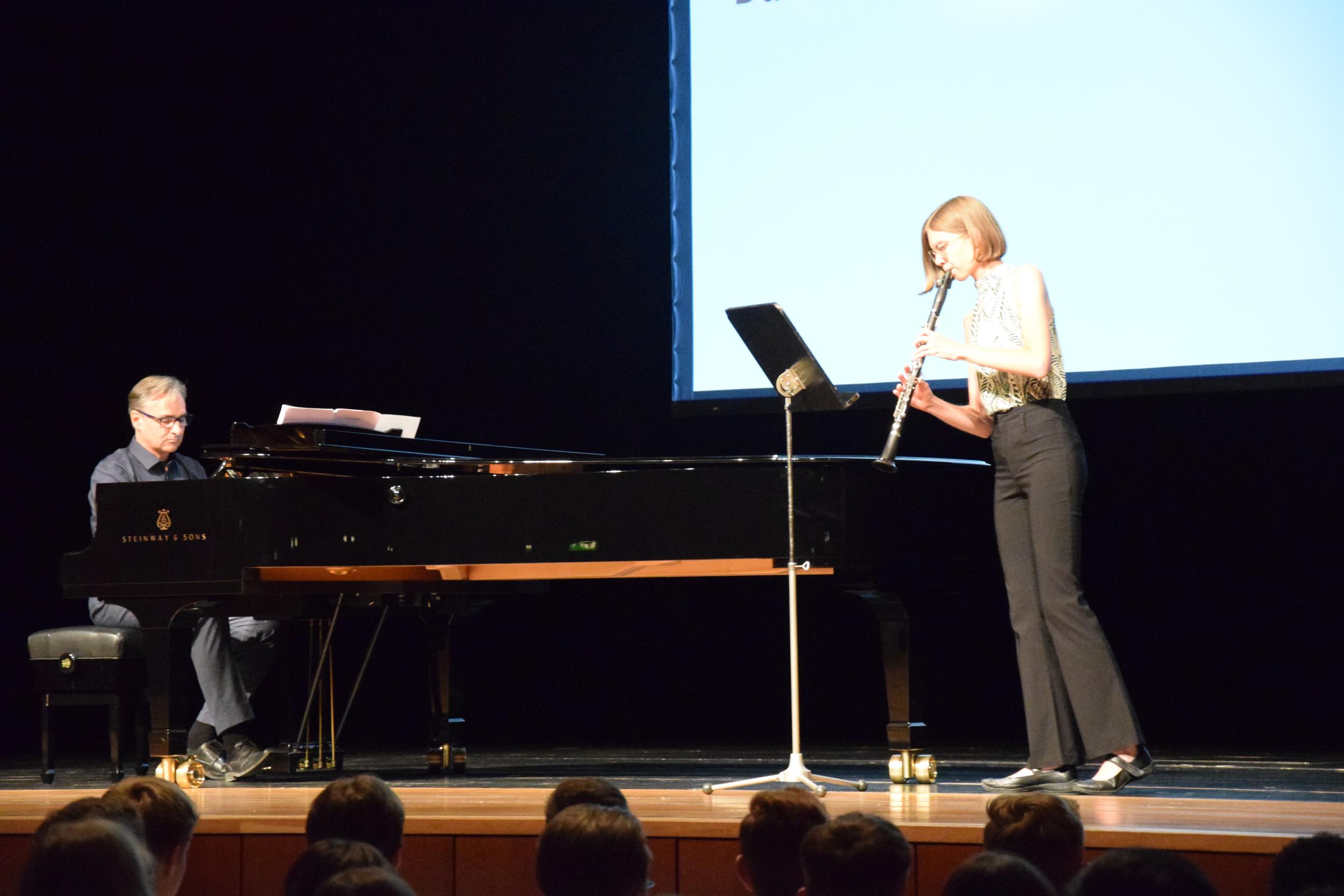 Für den musikalischen Auftakt sorgten die Abiturientin Aileen Stroda, begleitet vom stellvertretenden Schulleiter Matthias Helmle am Klavier mit Darius Milhauds „Duo Concertante für Klarinette und Klavier“.