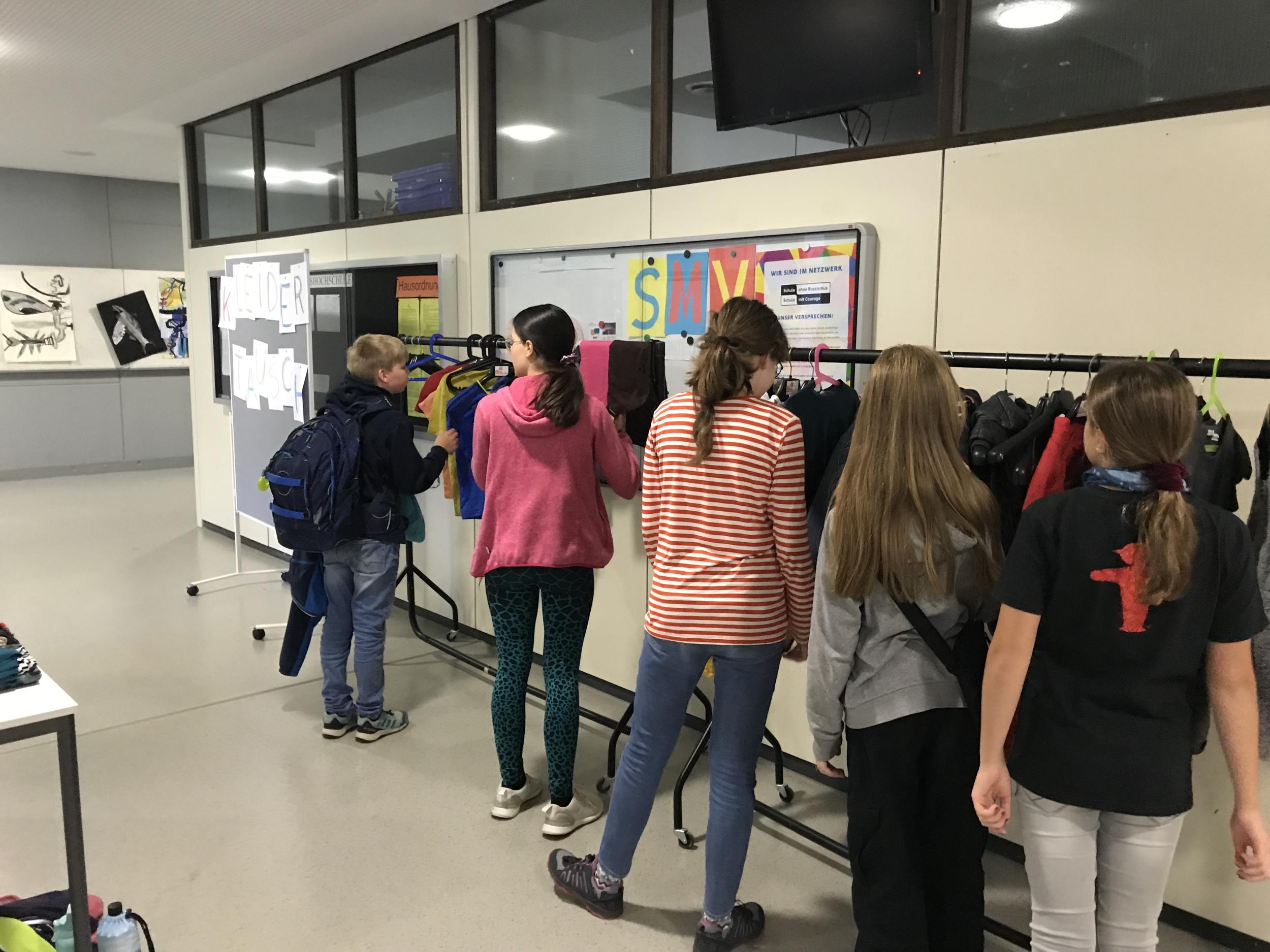 Da das eigentliche Ziel im Umgang mit Müll die Müllvermeidung ist, gab es auch hierzu eine dreitägige Aktion, bei der die Kinder nicht nur Müll, sondern auch Geld sparen konnten. Bei Deniz Kebap in der Schwarzwaldstraße gab es für Schülerinnen und Schüler mit gültigem Schülerausweis und einer passenden Tupperdose 50ct Rabatt auf alle Dönerboxen. Darüber hinaus fand am Freitag eine Kleidertauschparty mit Hilfe der Utensilien der Stuttgarter Organisation „Wir ernten, was wir säen“ statt.