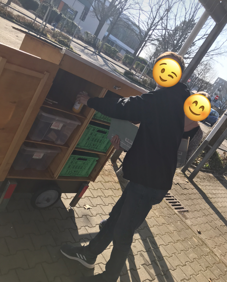 - Wir hatten bis jetzt Unterricht und sind einfach mal den Kreidepfeilen zum Fairteiler gefolgt - sieht toll aus und wir retten gleich noch GemĂŒse!