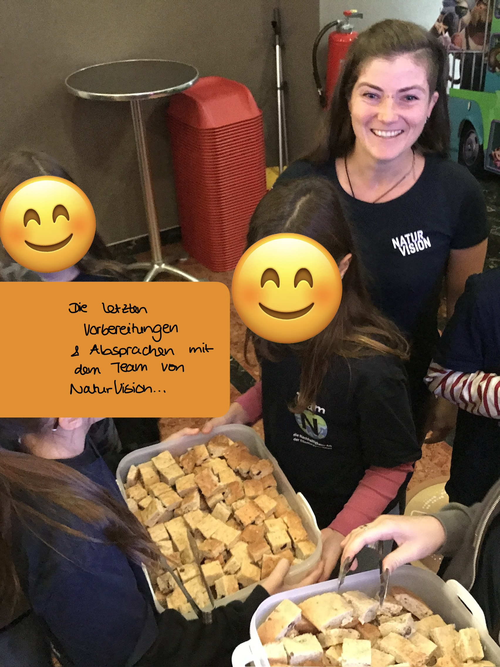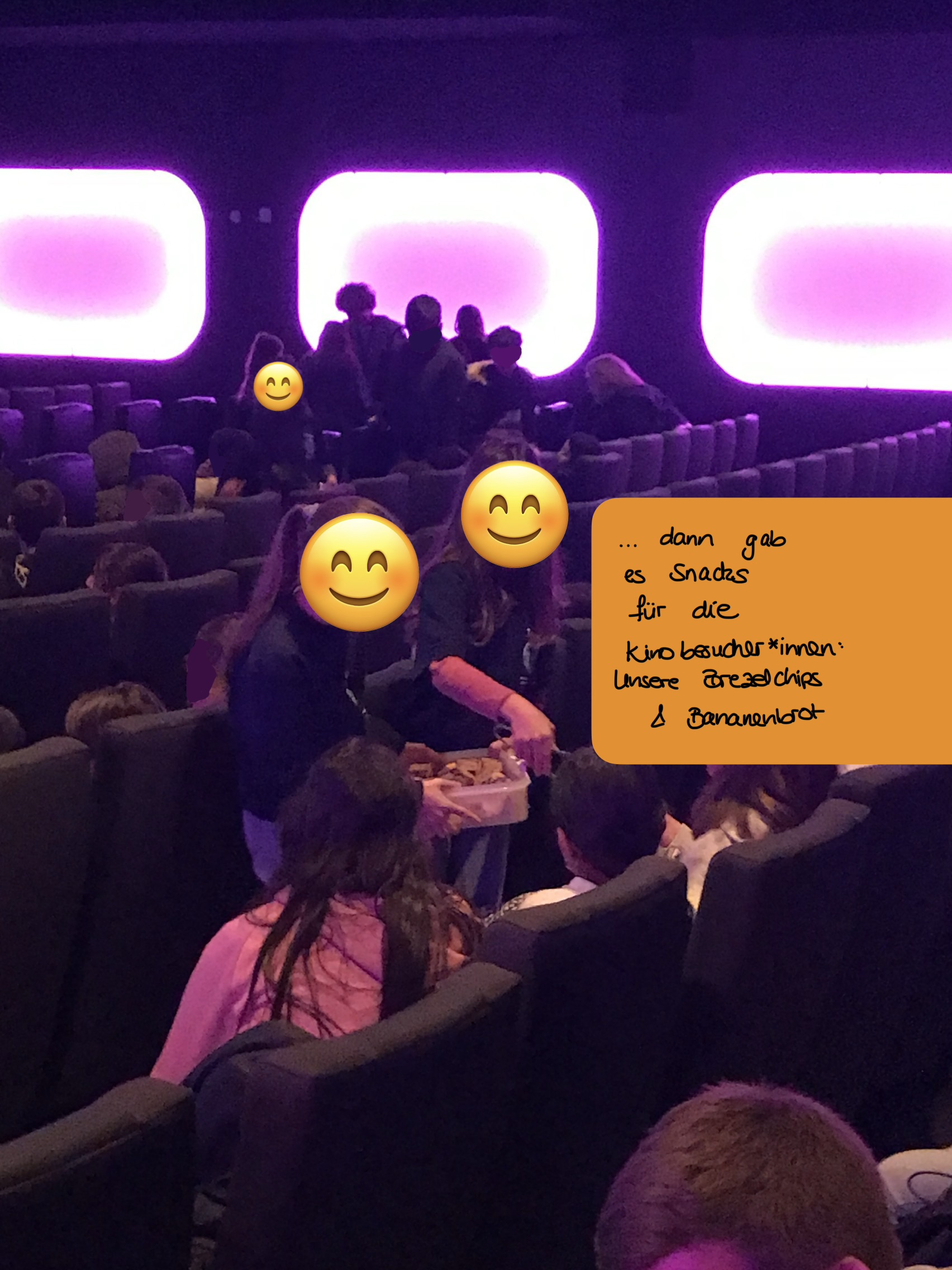 Passend dazu konnten die Kinobesucher*innen dann unsere Brezelchips und das Bananenbrot aus geretteten Zutaten snacken (und wir selbst natürlich auch 😉) und vor den Filmen durften wir das Team N auf der Bühne vorstellen und wurden im Anschluss sogar noch vom Fernsehen interviewt 🎤