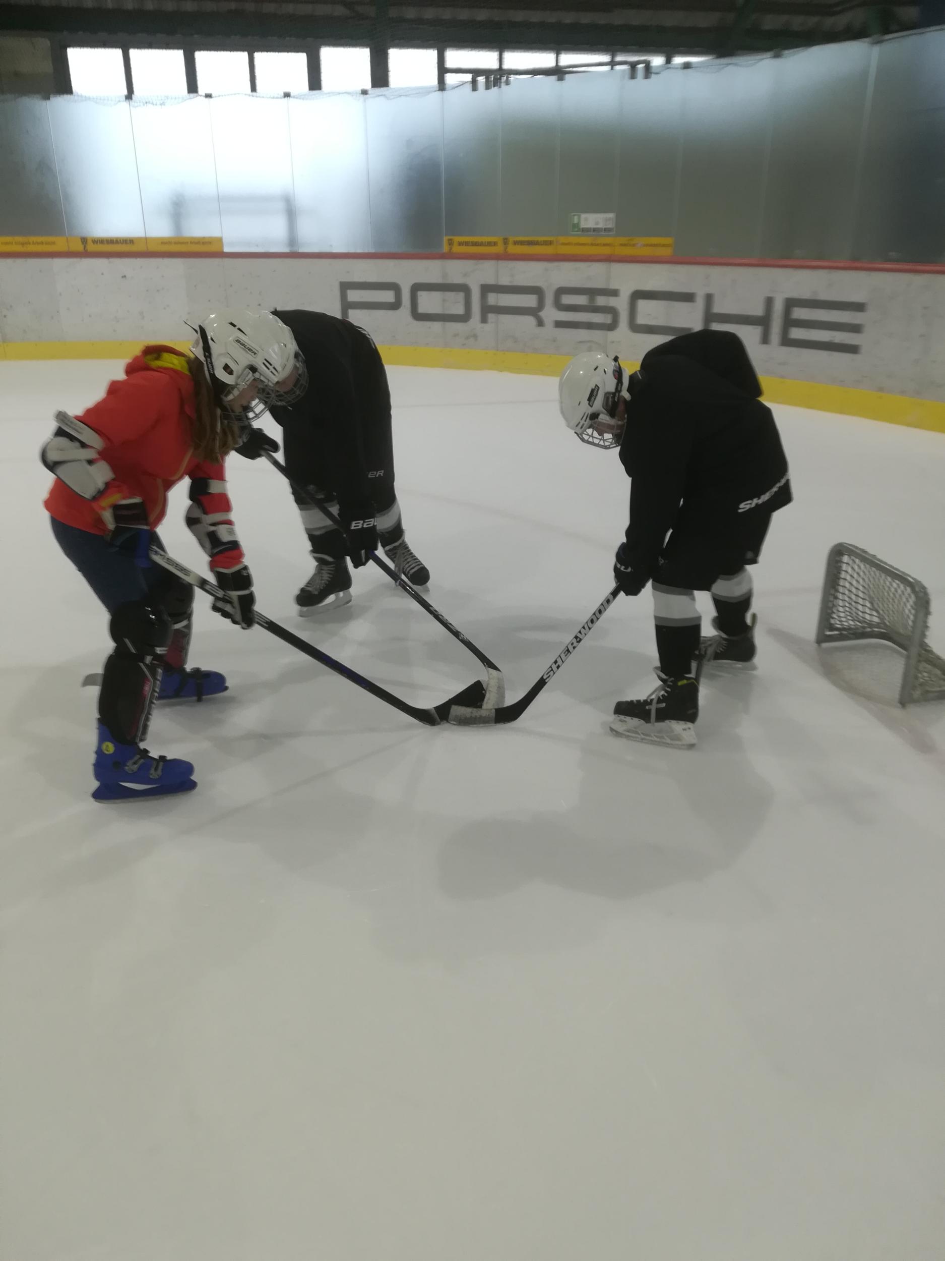 Die Freude bei den Eishockey-Fans war groß: Dieses Schuljahr konnte die Eishockey AG wieder statt finden! Bis zu 10 Teilnehmer*innen feilten an ihrer Lauftechnik, sei es vorwärts rückwärts, dem Bogen fahren bzw. Übersetzen und natürlich dem Bremsen und jagten beim Spiel dem Puck hinterher.