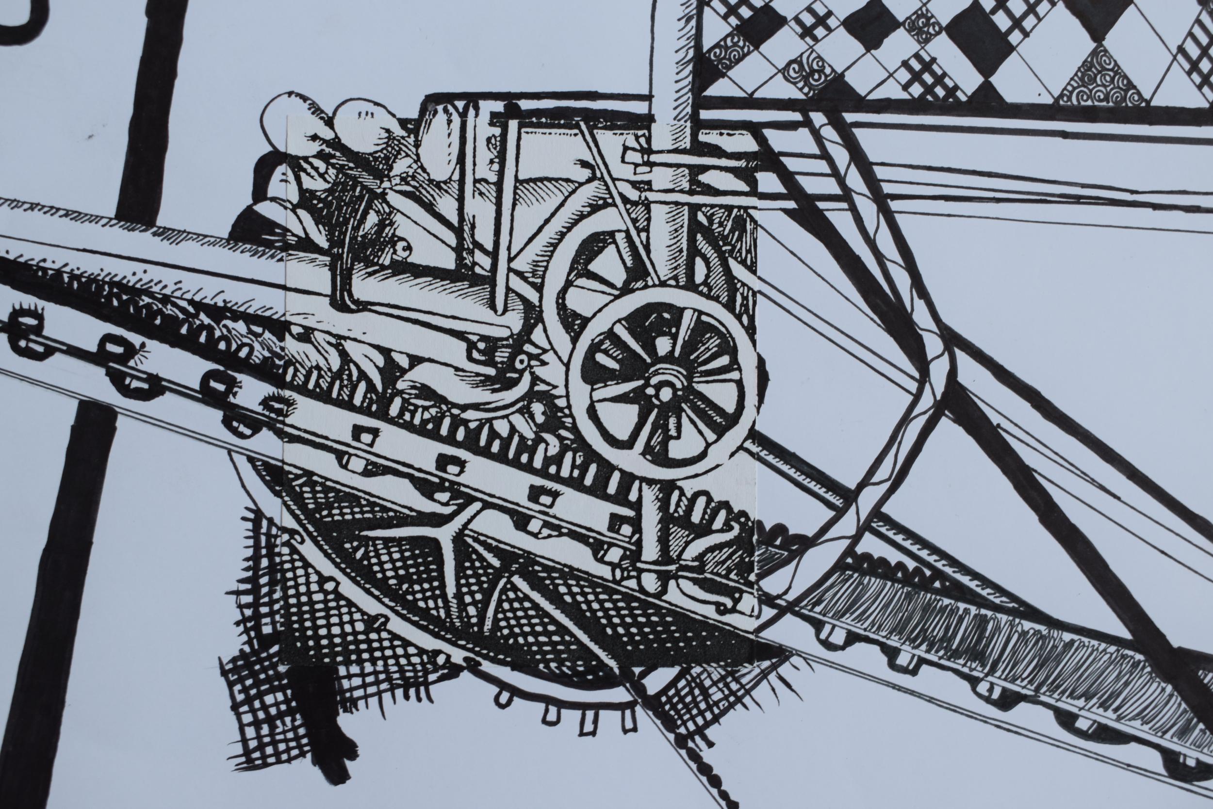 Maschinenbild Colage und Tusche Klasse 6
