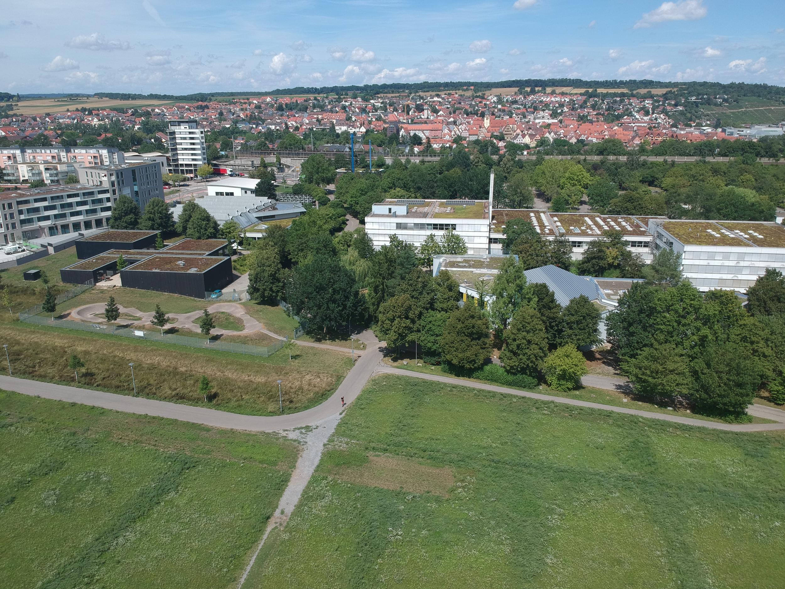 Die Gymnasien im Ellental verfügen über vier Gebäudeteile: K1 und K2, Mittelbau und Anbau.
