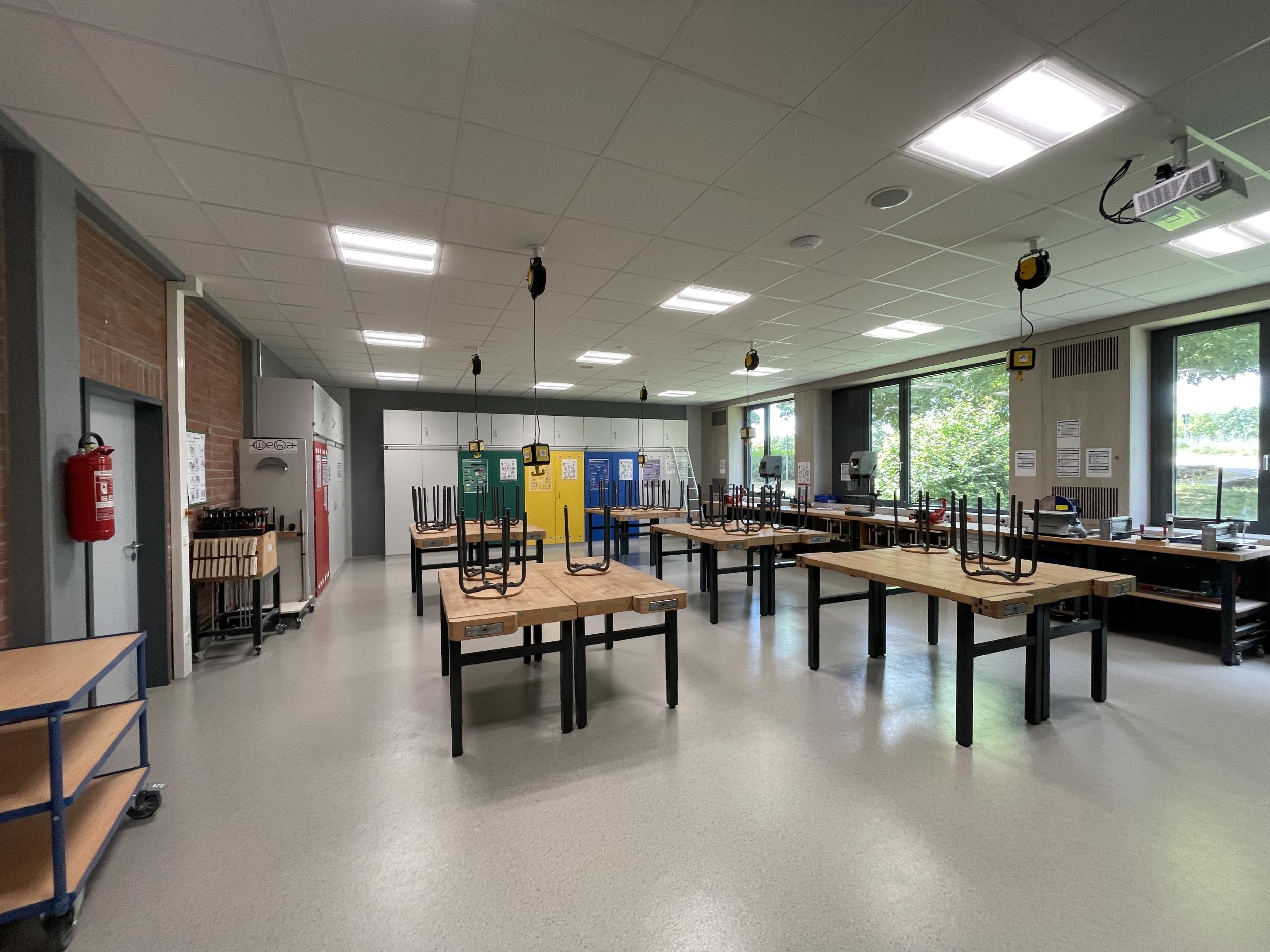 Im Anbau ist unsere Mensa zu finden, in der unsere Schüler:innen jeden Tag ein warmes Mittagessen oder auch nur Snacks einnehmen können.