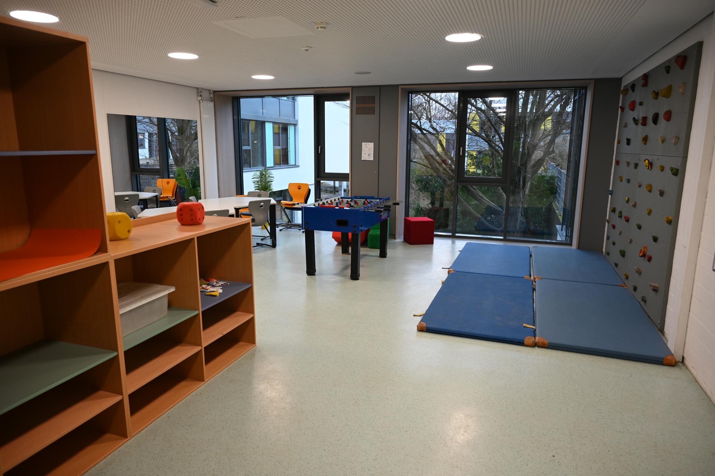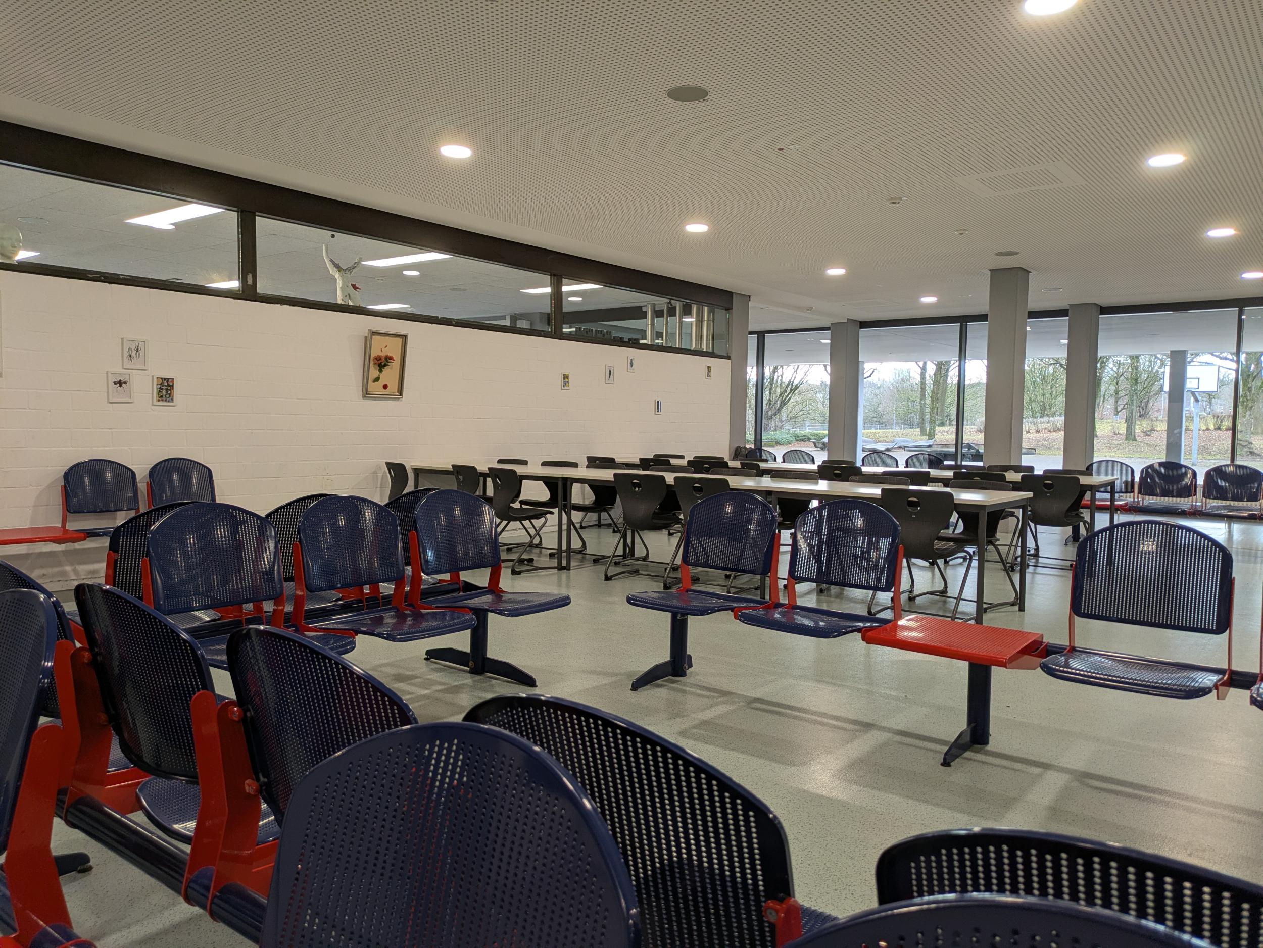 Für die Gemeinschaft stehen außerdem unsere großzügige und wunderschöne Aula sowie der Theater- und Filmraum zur Verfügung. Die Oberstufenschüler:innen sowie die SMV verfügt über eigene Aufenthaltsräume.
